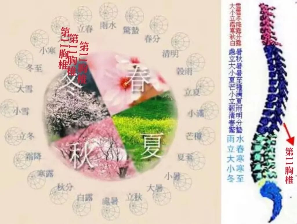 在春分这一天,可用想象力内视自己的第11胸椎,进行同步的感格体悟。