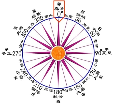 节气序列:春分是24个节气中的第四个节气,严格来说实为第七个节气,太阳到达黄经0°,复归于〇,从0°开始,是一个很好的转折之机。