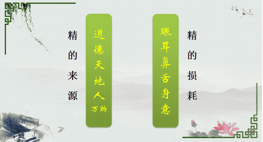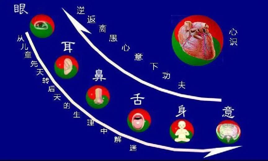 人体先天能量的漏渗,主要表现在眼、耳、鼻、舌、身、意前六根对先天真精肾气储备的调用消耗。
