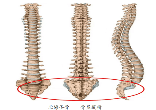 圣骨的上方,有双肾,肾内有其独特三元性;它的下方,有阴跷昔肌以及睾丸卵巢等,则具有无形化生有形、先天转生后天浊精的特点。